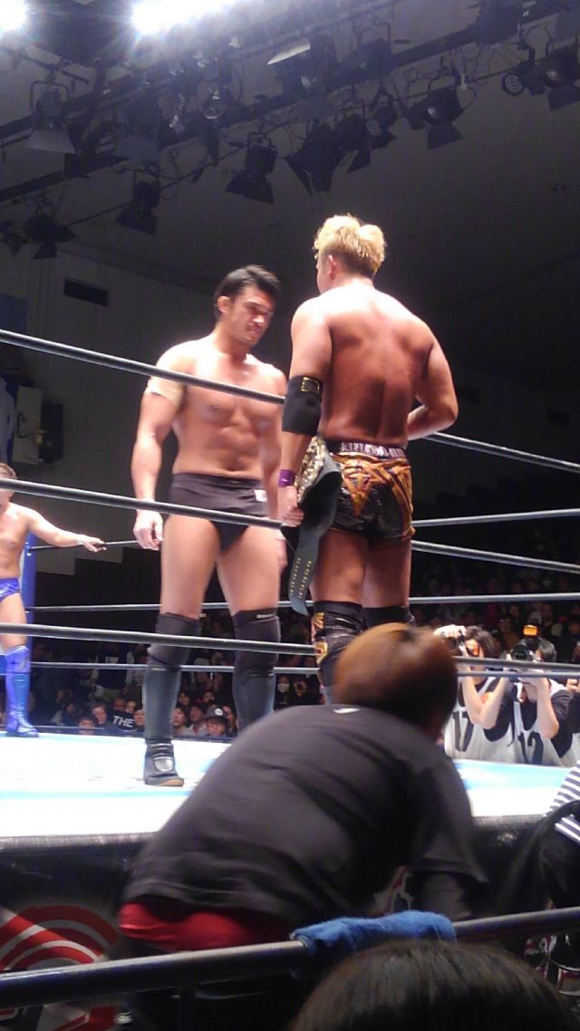 試合前の入場時は戦う男の顔つきでハイタッチはできず![]()