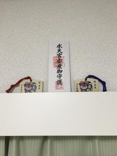 以前社長にいただいたお守り絵馬をかざりました。