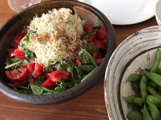 大好物の馬刺しとたっぷりのお野菜の品々です。