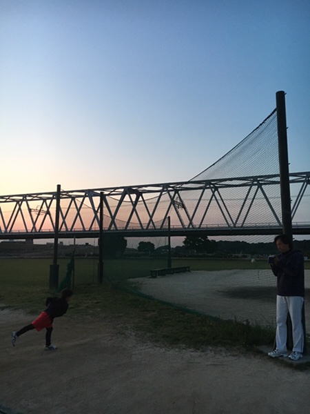 この間、リトルリーグが休みの日に、朝から江戸川まで練習に行きました。